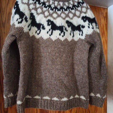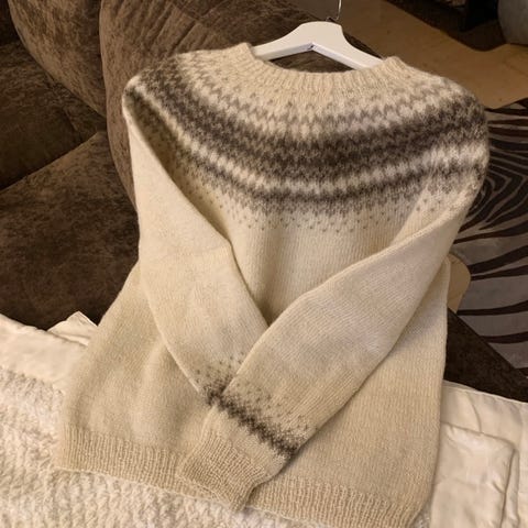 Neule on itse tehty Lettlopi langasta, mikä on 100% islantilaista villaa.