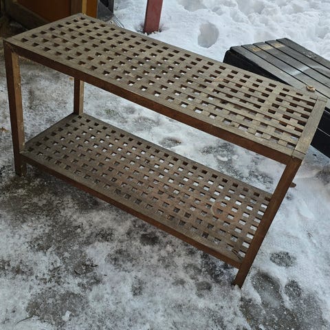 Myydään kulma hyllystö kokonaisuus .Tehty käsityönä talli lauta /kelosta.Tarjoa!