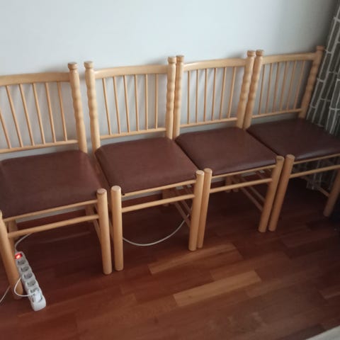 Myydään 4 ruokapöydän tuolia, Ikean Ekedalen sarjaa. Tummanruskea runko ja vaaleanharmaat istuimen päälliset. Päälliset helppo irroittaa ja pestä koneessa (pesty juuri). Tuolit ovat käytetyt ja jotain jälkiä varmasti on, mutta siistit, ehjät ja voi ottaa suoraan käyttöön.