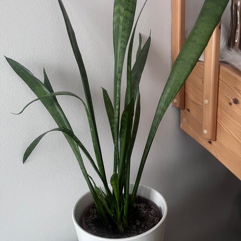 Jykevässä saviruukussa useita erikokoisia anopinhammas-taimia nyt uuteen kotiin. Ruukun korkeus on 16 cm, samoin halkaisija on 16 cm.