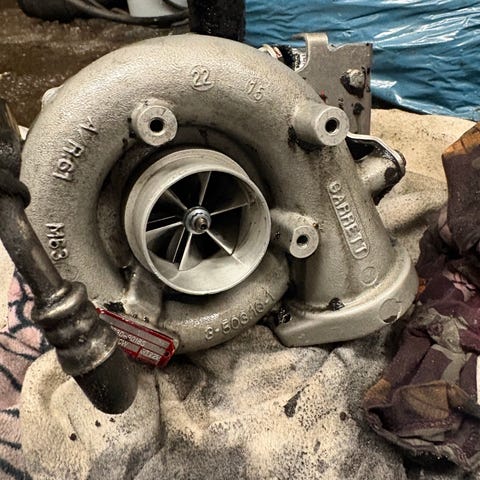 BMW turboahdin gt2260v. Metallirunkoinen pakokaasuahdin, jossa kompressori- ja turbiinipuoli sekä öljy-/paineletku mukana kuvien mukaisesti. Myytiin mulle e46 m57 käypäsenä ja siihen ei mee ilman modausta ja nyt kun auto myyty nii tämäkin turha