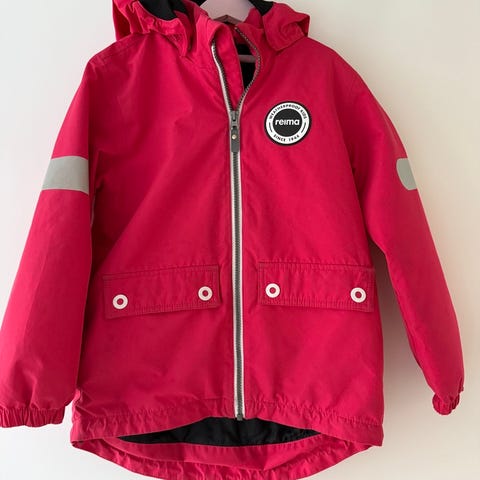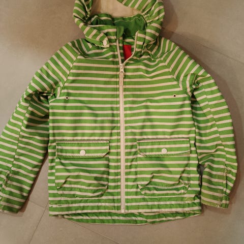 Reiman ulkoilutakki 128. Takissa kevyt verkkovuori. Takkiin tarttunut hiekkatahraa paikoitellen.