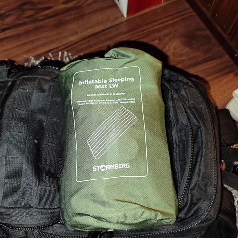 Itsestään täyttyvä makuualusta ulko- ja retkikäyttöön. Mitat noin 180 x 50 x 3 cm. Väri vihreä.
