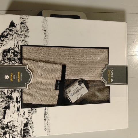 Myydään Jokipiin Pellavan käyttämätön ja paketissa oleva kylpypyyhe Kajastus.