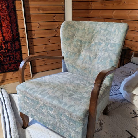 Ilmeisesti Askon 1950 luvun nojatuoli. Kerran jo korjailtu ja verjoiltu uudelleen. Vaatii uuden kunnostuksen. Ihana tuoli!