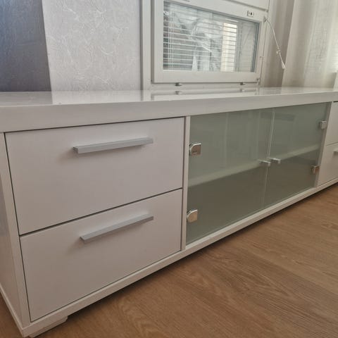 Myydään hyväkuntoinen korkeakiiltovalkoinen tv-taso. Laatikot ehjät ja toimivat. Kannessa yksi haalea naarmu, ei haittaa käyttöä. Edullinen hinta, maksu käteinen tai mobilepay