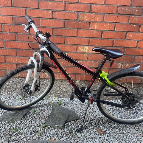 Nakamura Block 4 poikien polkupyörä 24". Maastotyylinen runko, väri musta punaisilla yksityiskohdilla. Varustettu lokasuojilla, seisontatuella ja heijastimilla.