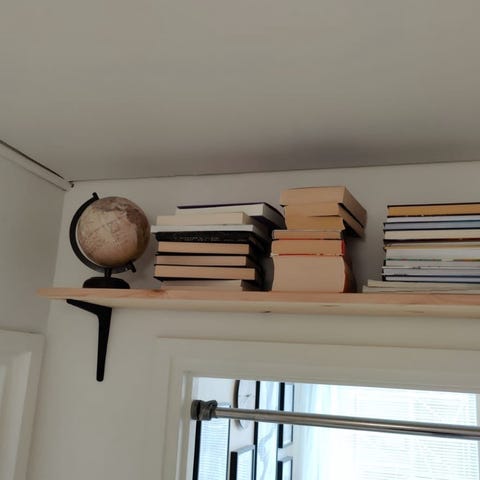 hyllykkö puu ja valkoinen metalli