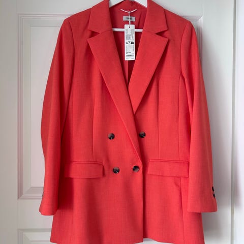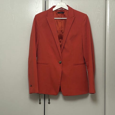 Esprit naisten bleiseri, koko 42. Väri tummansininen. Materiaalina viskoosi sekoitteena, vuori polyesteriä. Yksirivinen malli, jossa yksi nappi edessä ja kaksi etutaskua. Sopii esimerkiksi arki- ja toimistokäyttöön tai juhlapukeutumiseen. Kai-kai 54 cm. Pituus 29 cm