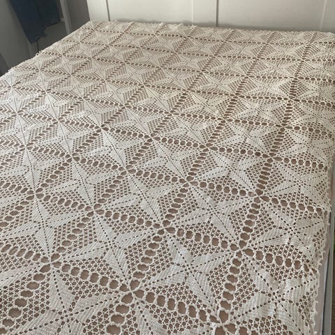 Kalalangasta virkattu peitto+kaksi pientä liinaa.
