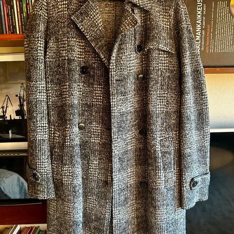 Marc O’Polo lyhyt ja ohut villakangastakki kevääseen , koko 40. Uudenveroisessa kunnossa, käytetty ehkä 2 kertaa. Säilytyksestä tullut pientä ryppyisyyttä. Ovh 270€. (Väri musta/valkoinen).
