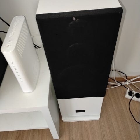 Vanhat kotiteatterin lattiakaiuttimet ja basso