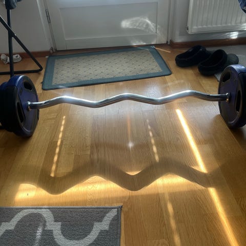 Levytanko ja useita levypainoja voimaharjoitteluun. Mukana mutkatanko ja useita erikokoisia pyöreitä levypainoja, jotka sopivat esimerkiksi käsipaino- ja ylävartaloliikkeisiin. Sopii kotisaliin tai pieneen harjoittelutilaan perusvoimaharjoittelua varten. 8 x 5kg ja pienempiä painoja mukana.