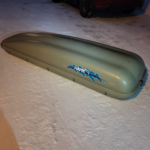 Thule Alpine 700 suksiboksi. Kunto hyvä. Myydään ilman kuvan taakkatelineitä.