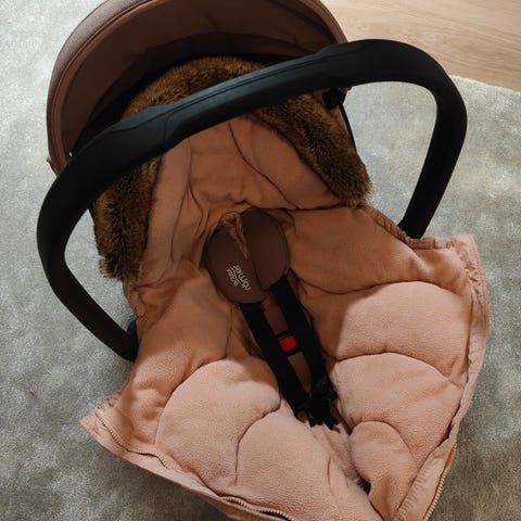 Adapterit, joilla turvakaukalon saa kätevästi rattaisiin. Mukana hyttyssuoja (ei näy kuvissa).