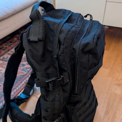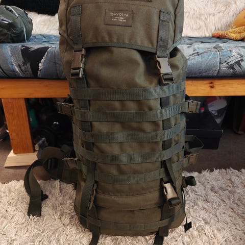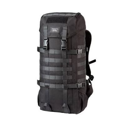 Savotta Jääkäri M reppu musta. Repussa on MOLLE-kiinnitysjärjestelmä ulkopuolella lisätaskuja ja varusteita varten. Selkäpuolella on pehmustetut ja säädettävät olkahihnat sekä lantiovyö, jotka tukevat kantomukavuutta. Yläosassa on läppä sulkumekanismilla ja sivuilla kompressiohihnat kuorman kiristämiseen. Soveltuu esimerkiksi retkeilyyn, vaelluksille ja muuhun ulkoilukäyttöön.