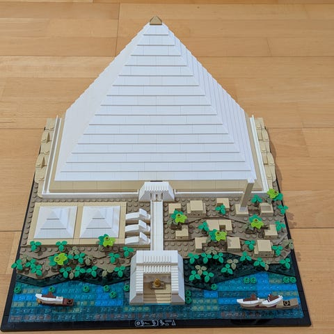 LEGO Architecture Great Pyramid of Giza rakennussarja esittää Gizan suurta pyramidia yksityiskohtaisena pienoismallina. Setti kuuluu LEGO Architecture -sarjaan ja on suunniteltu erityisesti aikuisille ja vanhemmille rakentajille, jotka ovat kiinnostuneita arkkitehtuurista ja historiallisista kohteista. Rakennussarja sisältää pyramidin lisäksi ympäröivää maisemaa, kuten jokiosuuden, pienempiä rakennelmia ja kasvillisuutta. Malli soveltuu näytteille asetettavaksi esimerkiksi hyllylle tai työpöydälle sisustuselementiksi sekä rakennus- ja keräilyharrastukseen.
