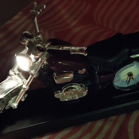 Indigo merkkinen herätyskello näyttä valon kun painaa napista. patteri mukana. Taittuu koteloksi ja kun käyttää saa kannen taakse tueksi niin kello pysyy pystyssä.