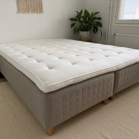 Myydään Ikean uudenveroinen 160 cm kiinteä runkopatja ja paksu sijauspatja. Todella tukeva kokonaisuus ja laadukas paksu sijauspatja. Ei eläimiä, tuoksuton koti ja vähän nukuttu. Verhoilu ruskeanharmaa. Uutena noin 1500 eur