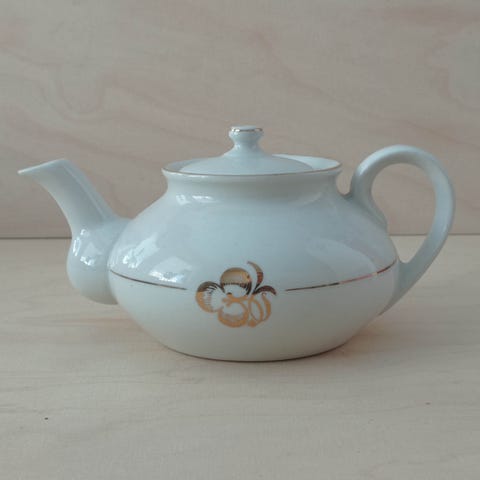 Lähes satavuotiaasta voi tuskin sanoa 'kuin uusi', mutta erittäin hyväkuntoinen Arabian vintage teekannu piippuleimalla.
