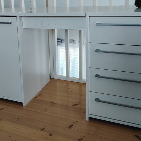 Siisti, lähes uutta vastaavassa kunnossa oleva työ-/ kirjoituspöytä, voi käyttää myös esim meikkipöytänä. Väri tummanharmaa / siniharmaa. Sivuilla toimivat pienet vetolaatikot. Ei näkyviä naarmuja tai koljuja.