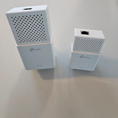 Käyttämättä jäänyt WIFI verkon laajennin. Järjestelmä käyttää sähköverkkoa verkkoyhteyden laajentamiseen huoneisiin joihin reitittimen signaali ei yllä luotettavasti.