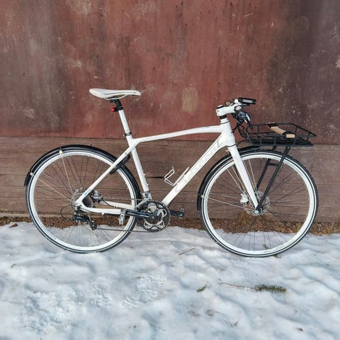 Nishiki hybridipyörä unisex-käyttöön. Runkokoko 56 cm ja 28" renkaat. Pyörässä on etu- ja takajarrut levyjarruilla, suora ohjaustanko sekä etuhaarukka, jossa on jousitus. Varusteltu takatavaratelineellä ja seisontatuella. Sopii yleiseen ajoon kaupunki- ja työmatkakäytössä sekä kevyille retkille. Uudet renkaat, matkamittari, kännykkäteline jne...