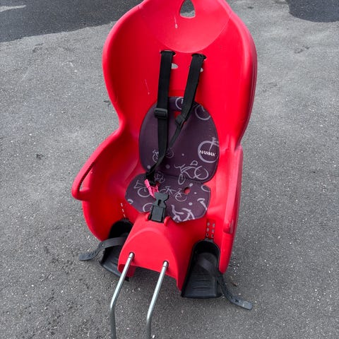 Hamax lasten pyöränistuin, kantavuus noin 15 kg. Istuin kiinnitetään polkupyörän runkoon metallisilla kiinnityskaarilla. Istuimessa on korkea selkänoja, turvavyö ja jalkatuet. Pehmuste on vaaleanpunainen kuviollinen. Soveltuu lapsen kuljettamiseen polkupyörän takana valmistajan ohjeiden ja painorajan puitteissa.