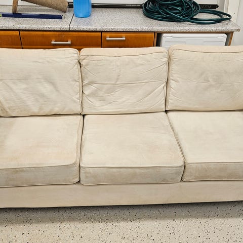 Muutamia tahroja (viimeinen kuva) päällinen irroitettava ja pestävä. Päällisen pesu jää ostajan vastuulle. Koiratalous eli joku karva voi löytyä.