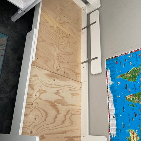 Jatko-osan toisesta reunasta irronnut pala ja sälepohjan reunimmainen säle ei pysy kiinni laidassa. Tällä ei vaikutusta sängyn käytössä millään tavalla ja varmaan voi jotenkin korjata halutessaan.