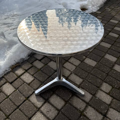 Metallinen pyöreä puutarhapöytä ja neljä tuolia. Kalusteryhmä on valmistettu metallista, ja sekä pöydässä että tuoleissa on ritilä- ja koristekuvioitu rakenne. Pöytä on pyöreä, keskellä reika aurinkovarjolle ja soveltuu ulkokäyttöön esimerkiksi pihalle, terassille tai parvekkeelle. Tuoleissa on selkänojassa koristeelliset yksityiskohdat ja istuimissa ritilämäinen pinta. Väri on musta.