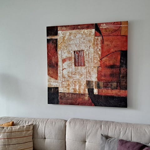 Abstrakti taulu, jossa mustavalkoinen grafiikkakuvio valkoisella taustalla. Teos on kehystetty kapeilla, tummilla kehyksillä. Sopii esimerkiksi olohuoneen, ruokailutilan tai työhuoneen seinälle moderniin sisustukseen. Kuvio muodostuu orgaanisista, epäsymmetrisistä muodoista ja pyöreistä elementeistä, jotka luovat rytmikkään kokonaisuuden. Taulu voidaan asettaa seinälle tai pitää lattialla seinää vasten nojaamassa. Tarkemmat mitat voi tarvittaessa mitata erikseen.