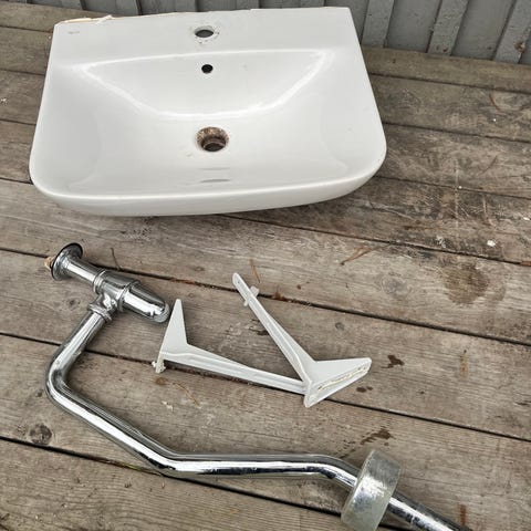Vanha IDO pesuallas pois uuden tieltä. Valkoinen keraaminen malli. Soikea allas, jossa hananreikä ja ylivuotoaukko. Soveltuu vaikka kylpyhuoneeseen tai wc-tilaan tasoon asennettavaksi.