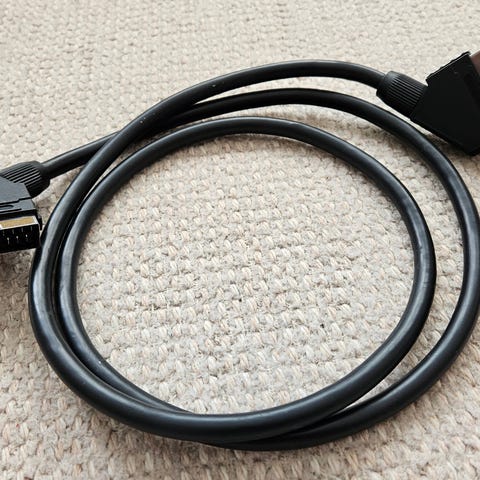 Vähän reilun metrin pituinen Scart-johto.