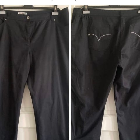 Ellos farkkuhame koko 54. Sininen denim-materiaali. Edessä vetoketju ja nappikiinnitys, vyölenkit sekä etutaskut. Takana paikkataskut. Perusmallinen, polven yläpuolelle ulottuva hame. Reilusti joustavaa materiaalia. Tosi hyvä kuntoinen.