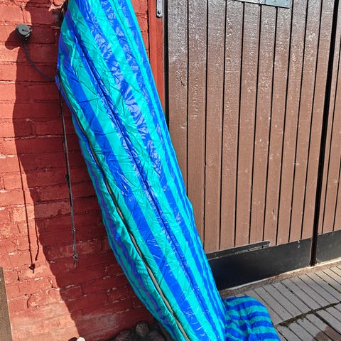 Kuvasta selviää täytteen paino, makuupussi koko ynnä muut tiedot