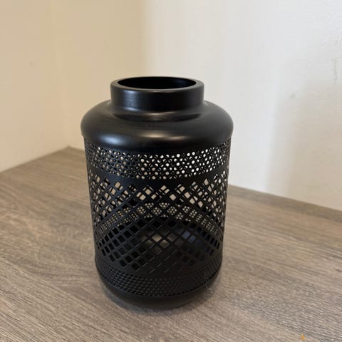Metallinen/lasinen musta kynttilälyhty. Ruoholammella