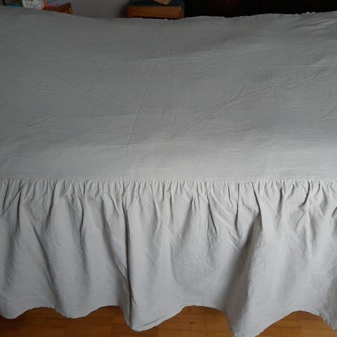 Lennol helmalakana 80 cm leveään sänkyyn. Toinen pääty ilman helmaa.