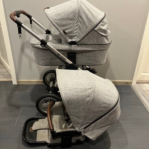 Täysin ehjät ja siistit vaunut. Erityismainintana iso koppa. Mukaan saa settiin kuuluvat sadesuojan ja hyttyssuojan. Myös ratasosaan harmaa jalkapeite pitämään jalat lämpiminä.