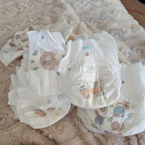 Annetaan sekalainen setti housuvaippoja: Muumi baby koko 5, Libero koko 6, Lupilu koko 5, uimavaippoja koko 5-6. Vain kaikki kerralla. Osassa ei pakettia, koska on laitettu koriin odottamaan käyttöä mutta jäivätkin pieniksi.