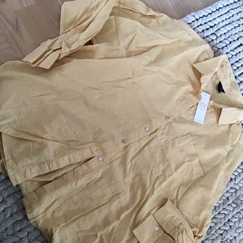 Fashion, Haloselta ostettu pellavapusero naisten XXL-kokoisena. Puserossa on monivärinen kukkakuviointi vaaleanpunaisella pohjalla. Malli on väljä, lyhythihainen ja etupuolella on laskos ja napitus. Puserossa on pyöristetty helma ja edessä paikkataskut. Kai-kai 59cm ja pisin olka-helmamitta 88cm.
