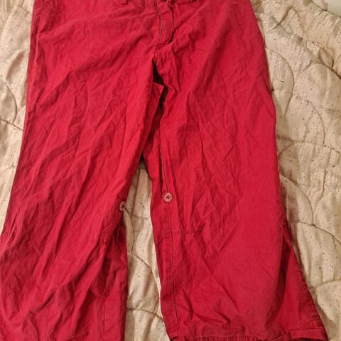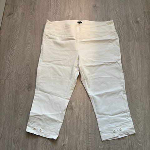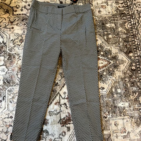 Puna-valko kuviolliset ihanat joustavaa mutta napakkaa kangasta olevat caprimalliset housut. Koko xl. Käyttämättömät.