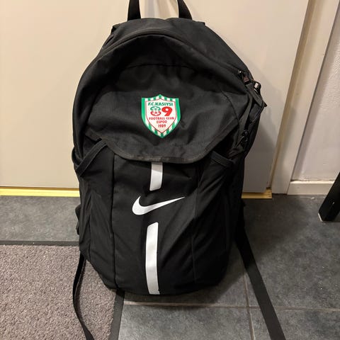 Musta reppu, jossa useita vetoketjullisia taskuja ja edessä verkkotasku esimerkiksi pallolle tai muille varusteille. Säädettävät olkahihnat. Soc merkkinen. Kuvan pallo ei kuulu kauppaan. Kulkeutuu Tampereen alueella tarvittaessa omien menojen mukaan.
