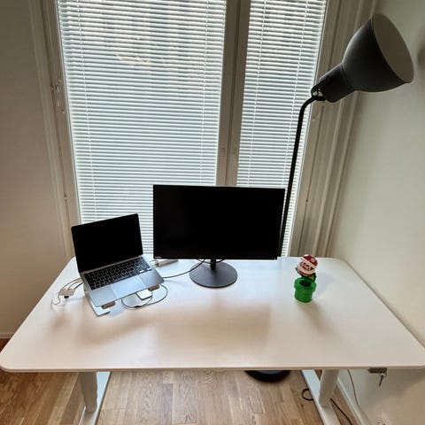 Hyvänkuntoinen IKEA:n valkoinen sähköpöytä myynnissä. Pöydässä ei ole muistiasetuksia, mutta toimii moitteettomasti. Muutaman vuoden ikäinen, mutta sähköistä korkeudensäätöä on käytetty todella vähän – sopiva työskentelykorkeus on löytynyt heti eikä pöytää ole tarvinnut juurikaan säätää.