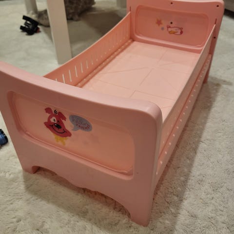 Vuosituhannen vaihteesta baby bornin sänky. Ohjeet mukana. Joskus toiminut pattereilla, soittanut jotain musiikkia. Nukke ei kuulu kauppaan.