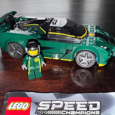 Lego Lotus auto ja figuuri.