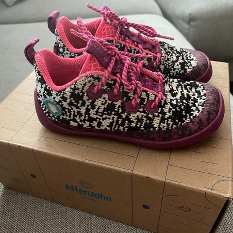 Affenzahn siistit ja kevyet paljasjalkakengät koko 25. Helpot lapsen pukea jalkaan. Käytetty toisten kenkien ohella, kunto on hyvä.