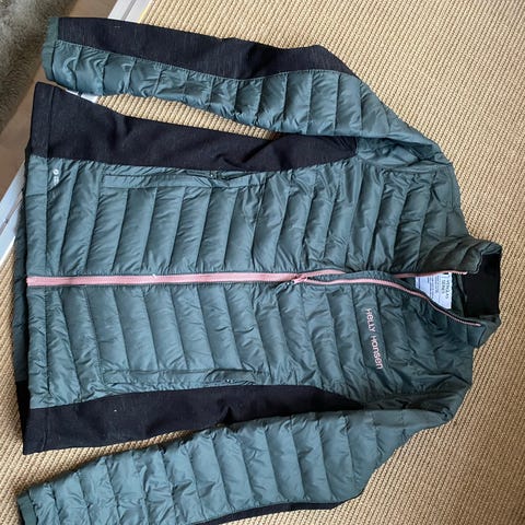 Helly Hansen naisten takki koossa M. Tummansininen kuoritakki, jossa korkea kaulus ja täyspitkä vetoketju edessä.