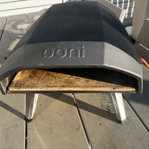 Grill Meister Portable Outdoor pizza-uuni ulkokäyttöön. Uunissa on sisäänrakennettu lämpömittari lämpötilan seuraamiseen sekä mukana tuleva pizzakivi paistopinnan tasaisuutta varten. Uunin mitat ovat noin 64 cm korkeus, 82 cm pituus ja 42 cm leveys. Soveltuu pizzojen ja muiden uuniruokien valmistukseen pihalla tai terassilla.