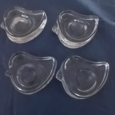 Iittala lasinen Jorma Vennolan suunnittelema linnun muotoinen Tiu-munakuppi. 8€/kpl tai kaikki kuusi kappaletta yhteensä 40€.